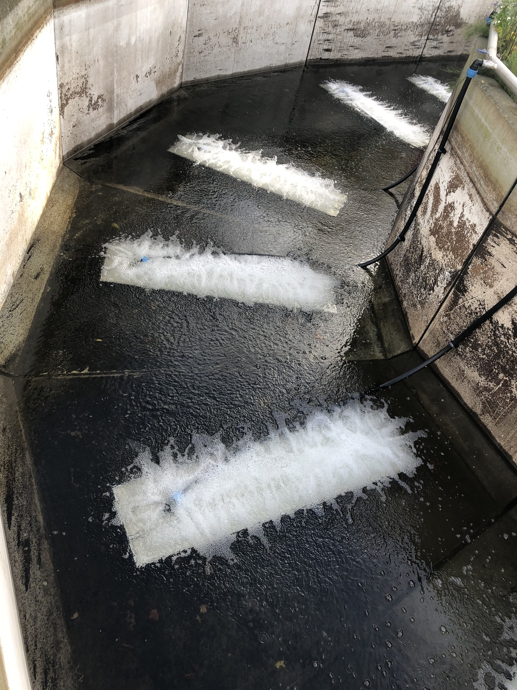 In der Kläranlage Garz erfolgt die biologische Abwasserreinigung derzeit mittels Rohrbelüfter (Lufteintrag durch eine fahrende Rohrbrücke).