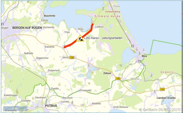 Vollsperrung Landstraße zwischen Lubkow-Streu-Karow vom 23. Oktober bis Ende Mai 2024