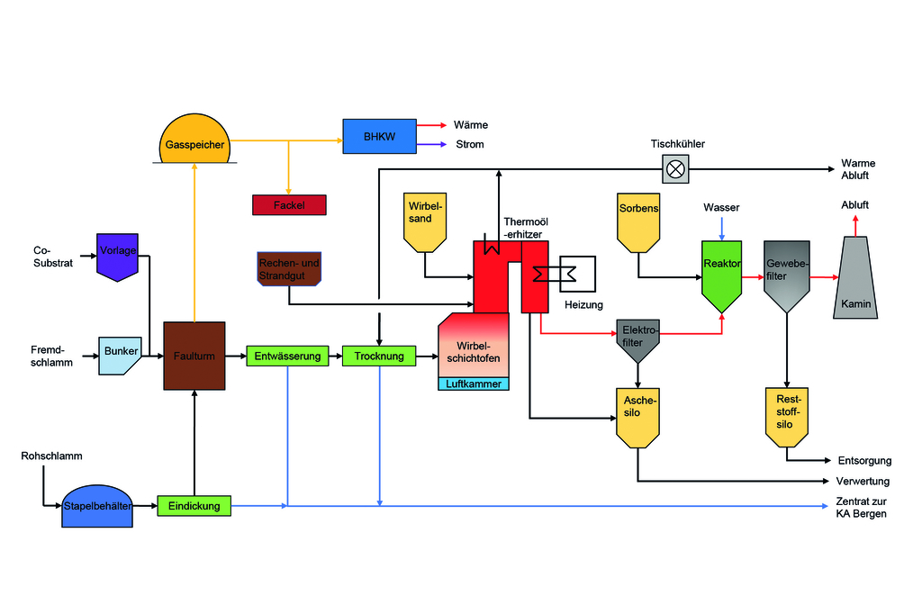 Auf eine zusätzliche Stromerzeugung aus der Klärschlammverbrennung wurde bewusst verzichtet, da die elektrische Energie aus der Motorenanlage den Standort vollständig versorgen kann.
