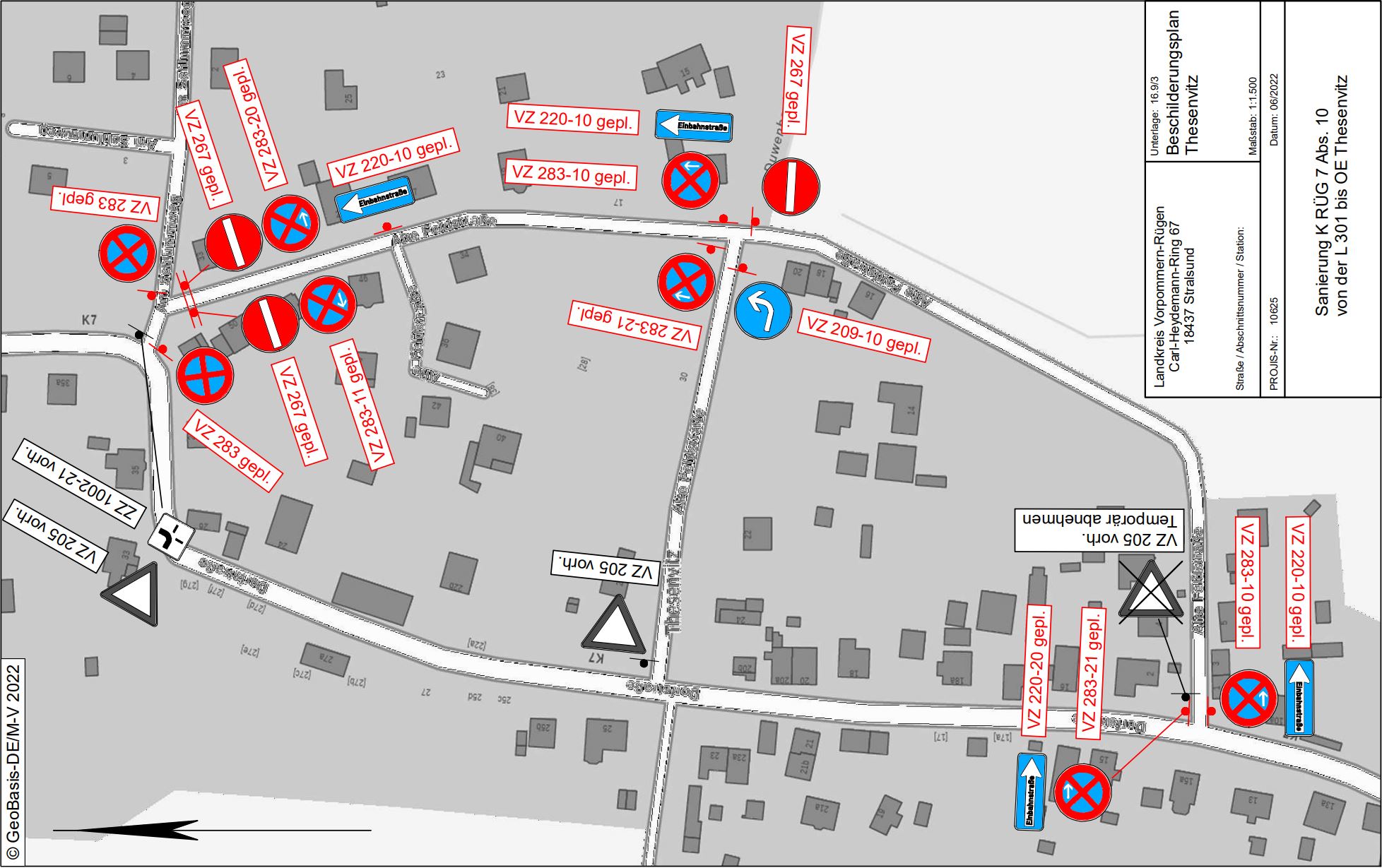 Die gesamte Baumaßnahme wird unter einer Vollsperrung der Kreisstraße RÜG 7 ausgeführt. Der Verkehr wird über eine entsprechende Beschilderung umgeleitet.