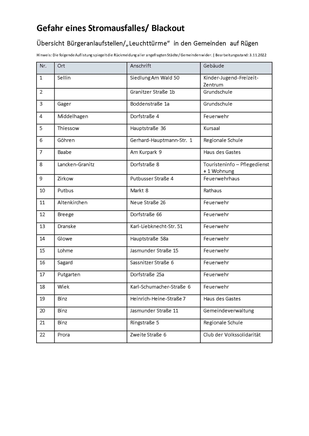 Beachten Sie bitte auch immer unsere regelmäßigen Facebook-Posts auf der ZWAR-Facebookseite www.facebook.com/zweckverbandruegen, sowie entsprechende Aushänge und Informationsblätter bei den Bürger-Anlaufstellen, den sogenannten „Leuchttürmen“ in Ihrer Gemeinde.